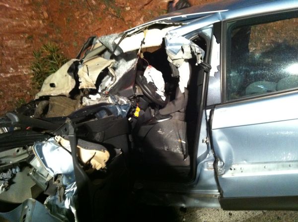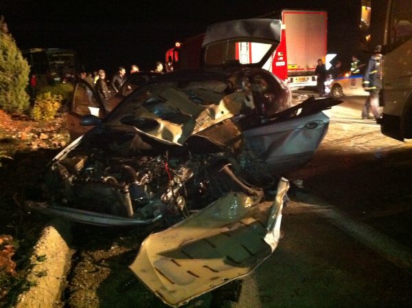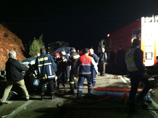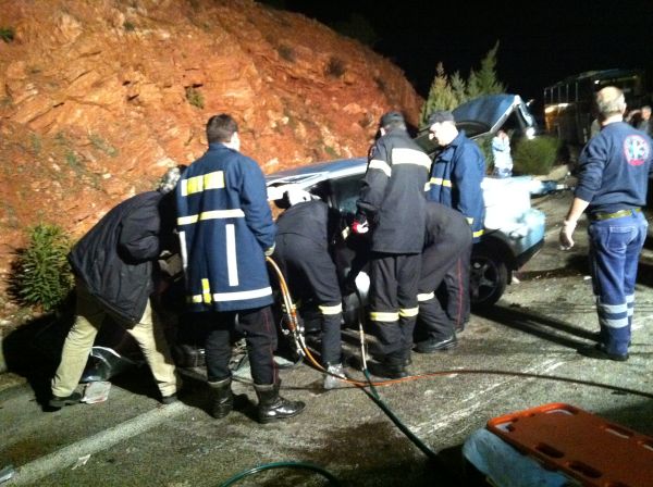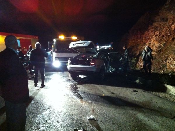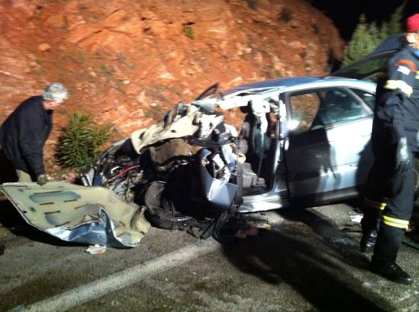 Λίγο μετά τις 19.00΄, από άγνωστη αιτία, σε μια στροφή στο 12ο χλμ. έχασε τον έλεγχο, πέρασε στο αντίθετο ρεύμα και χτύπησε το φορτηγό που ανέβαινε, για να βρεθεί στη συνέχεια απέναντι στα βράχια.
