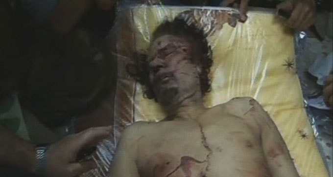 Τελικά, με μια σφαίρα στο κεφάλι ο Καντάφι έπεσε νεκρός.
