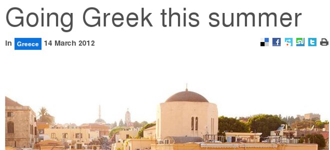 Ένα διθυραμβικό άρθρο - πραγματική διαφήμιση για την Ελλάδα και τον τουρισμό της μας δημοσιεύει το BBC στην ταξιδιωτική του ενότητα κάτω από τον τίτλο «Αυτό το καλοκαίρι γινόμαστε Έλληνες» (Going Greek This Summer)....