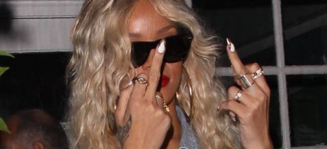 Προφανώς την εκνευρίζουν ιδιαίτερα οι παπαράτσι τη Rihanna και το δείχνει με κάθε ευκαιρία. Δεν εξηγείται αλλιώς το γεγονός ότι για μία φορά ακόμα, τους χαιρέτησε υψώνοντας το μεσαίο δάχτυλο, αυτή τη φορά και των δύο χεριών της!...