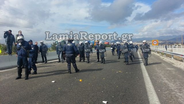 Οι αγρότες προσπάθησαν να κλείσουν την εθνική οδό στο ύψος της Ανθήλης, έξω από την Λαμία...