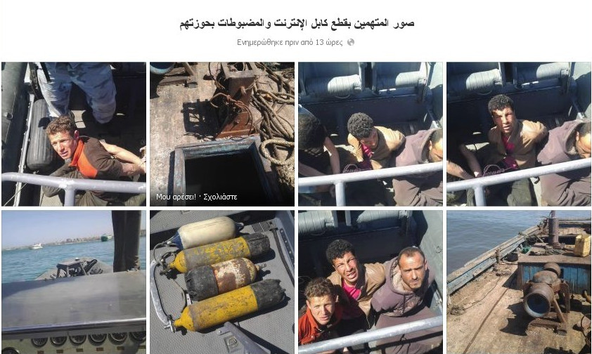 Οι συλληφθέντες, τις φωτογραφίες των οποίων «ανέβασε» στο Facebook το πολεμικό ναυτικό, ανακρίνονται από τις αιγυπτιακές αρχές.