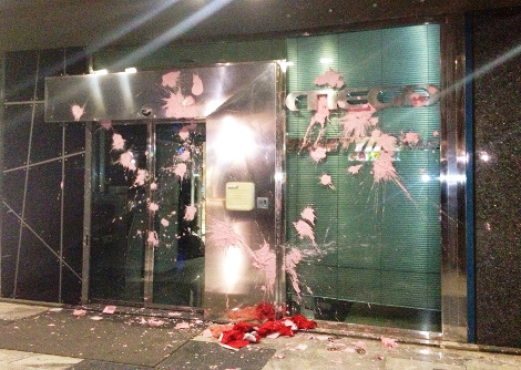 Συγκεκριμένα, οι βουλευτές του κόμματος Χρήστος Παππάς, Νίκος Μίχος, Γιάννης Λαγός, Ηλίας Κασιδιάρης, Ηλίας Παναγιώταρος. Αρτέμις Ματθαιόπουλος και Ελένη Ζαρούλια ζήτησαν από τις αστυνομικές δυνάμεις να περάσουν μέσα στο κτίριο για να επιδώσουν ψήφισμα διαμαρτυρίας στη διοίκηση του καναλιού, αλλά αντ' αυτού πέταξαν κεσέδες με ταραμά στην είσοδο του σταθμού.