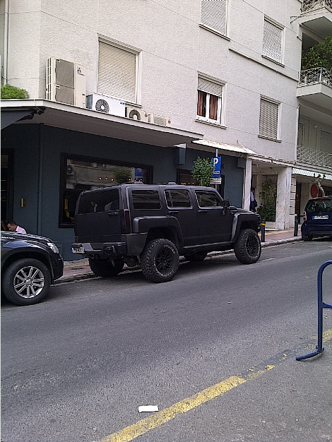 Πέρασε κιόλας η οικονομική κρίση; Αυτό δείχνει να πιστεύει επιχειρηματίας του Κολωνακίου ο οποίος εδώ και μια εβδομάδα πραγματοποιεί εντυπωσιακή εμφάνιση στη λιλιπούτεια πλατεία με το υπερμεγέθες Χάμερ του....