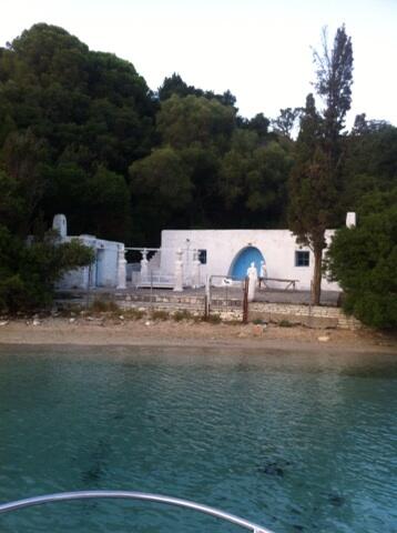 Στην εικόνα βλέπει κανείς κάποιες απομιμήσεις από Καρυάτιδες να κοσμούν την παραλιακή κατοικία του ρώσου μεγιστάνα.