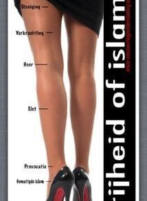 Κέντρο βάρους της αφίσας; Ένα ζευγάρι από γυναικεία πόδια, που στηρίζονται πάνω στις περιβόητες Louboutin, με το μήκος των ποδιών της σημαδεμένο γραφιστικά σε διάφορα επίπεδα, τα οποία υποδεικνύουν το πως αυτή η γυναίκα θα χαρακτηριζόταν σε μια ισλαμική κοινωνία αν το φόρεμά της έφτανε στο κάθε επίπεδο: "Πόρνη, προκλητική, για λιθοβολισμό, συμβατή με το κοράνι κλπ". Με κυρίαρχο σλόγκαν "Ελευθερία ή Ισλάμ" και εμπνευστή της καμπάνιας την οργάνωση "Γυναίκες ενάντια στον Ισλαμισμό".