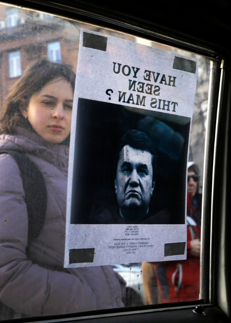 Σε διάφορα σημεία του Κιέβου τοποθετήθηκαν αφίσες με την εικόνα του καταζητούμενου προέδρου και το ερώτημα «Εχετε δει αυτόν τον άνδρα;»