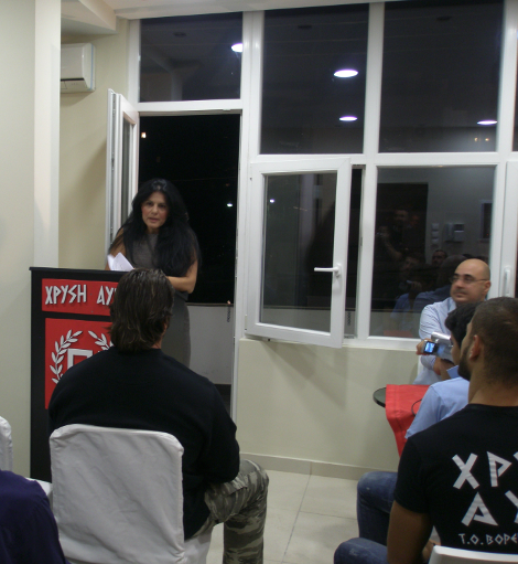επελέγη για να ανοίξει την εκδήλωση που φιλοξενήθηκε σε κεντρικό ξενοδοχείο της πρωτεύουσας, ενώ λίγο αργότερα το λόγο πήρε η οικονομολόγος Αγγελική Γεννατά για να αναλύσει τις κινήσεις της «Ελληνικής Αυγής», ώστε, όπως είπε, «να επέλθει η κάθαρση στον Δήμο Αθηναίων».