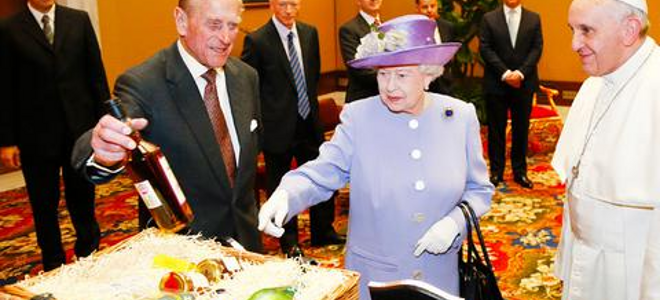 Η βασίλισσα Ελισάβετ συνάντησε για πρώτη φορά τον πάπα Φραγκίσκο και του δώρισε διάφορα προϊόντα που ξάφνιασαν τον Ποντίφικα, ανάμεσά τους ...