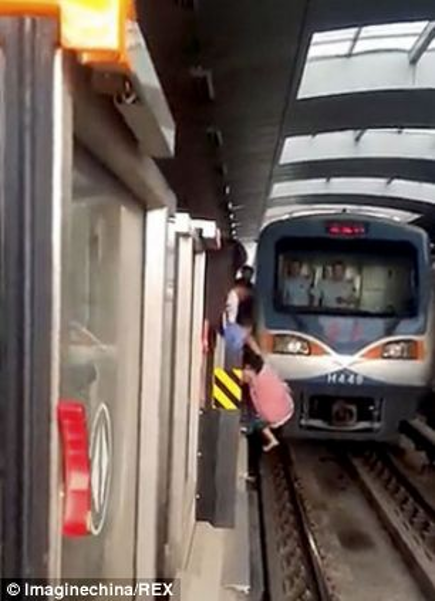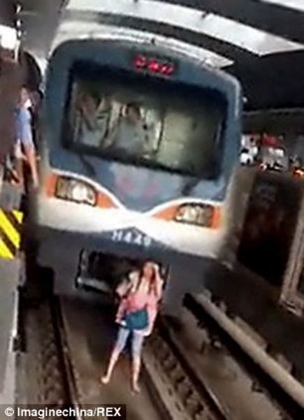 στο Πεκίνο και ο μηχανοδηγός του διερχόμενου συρμού καταφέρνει την τελευταία στιγμή να πατήσει φρένο.