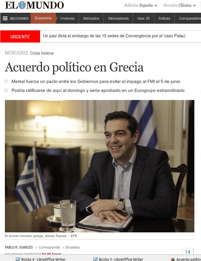 με πρωτοβουλία της Γερμανίδας Καγκελαρίου θα επέλθει συμφωνία για να μπορέσει να πληρώσει η Ελλάδα τη δόση στο ΔΝΤ στις 5 Ιουνίου.
