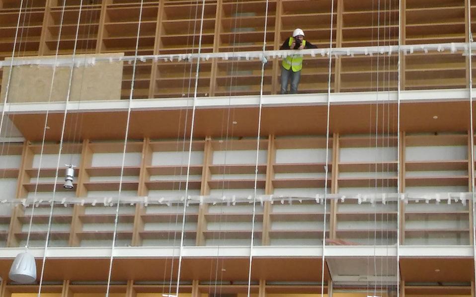 μηχανισμοί, ηλεκτρολογικός εξοπλισμός, έπιπλα.Χθες, το Ιδρυμα «Σταύρος Νιάρχος», που είναι ο μεγάλος χορηγός του Κέντρου Πολιτισμού, «άνοιξε» τα κτίρια της Βιβλιοθήκης και της Λυρικής για τους δημοσιογράφους, παρουσιάζοντας την πρόοδο των εργασιών. Στην Εθνική Βιβλιοθήκη, η τοποθέτηση των υαλοπετασμάτων έδειξε πόσο λουσμένο στο φως θα είναι το κτίριο των 22.000 τ.μ., στο οποίο θα φιλοξενούνται έως 1 εκατομμύριο βιβλία.